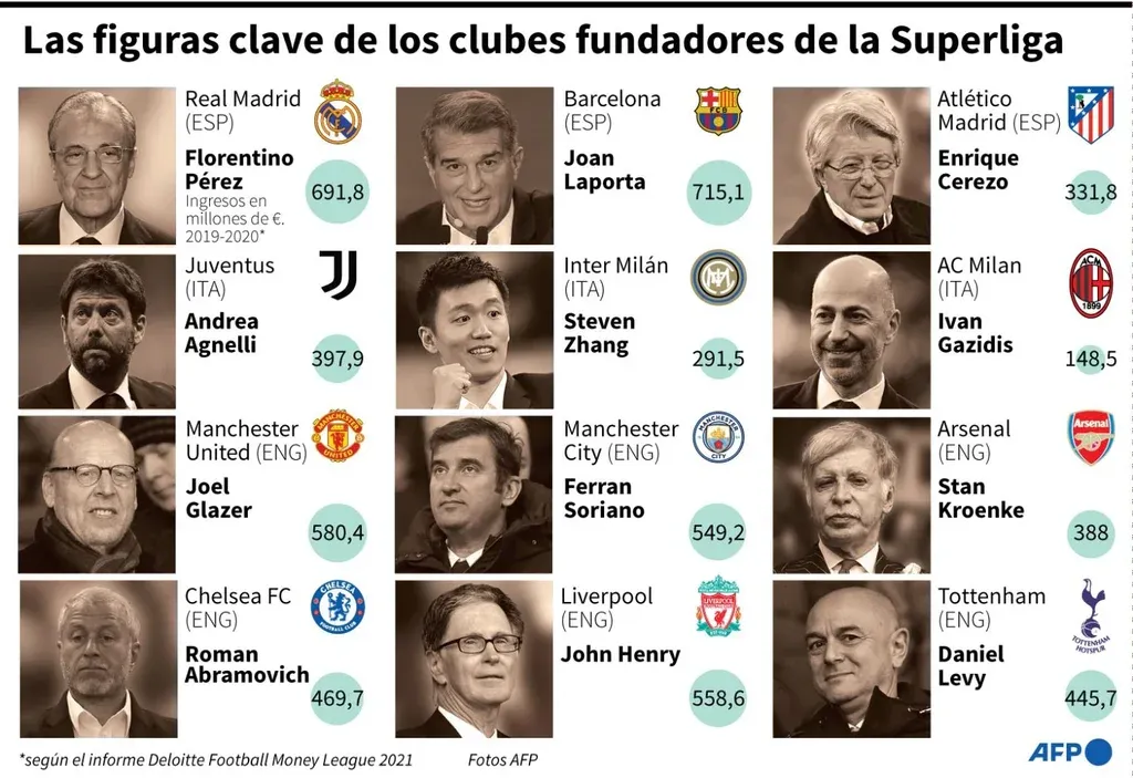 El presidente de los merengues, Florentino Pérez, fue elegido también presidente de la Superliga. Los clubes alemanes más poderosos, como Bayern Munich y Borussia Dortmund, no se unieron a la idea. Tampoco el París Saint Germain de Francia.