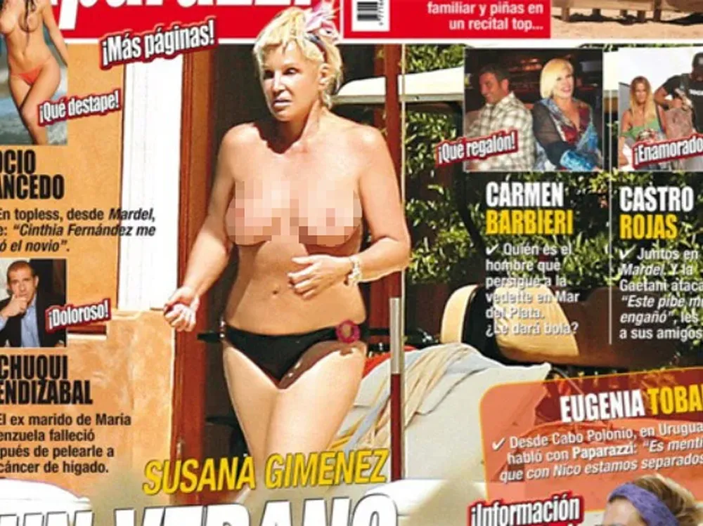 La diva argentina Susana Giménez fue fotografiada mientras tomaba sol en topless en su chacra, “La Mary”, de Punta del Este, informó la revista argentina Paparazzi, que publicó imágenes del descuido.
