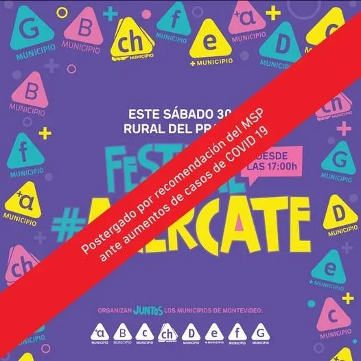 El Festival Acercate que se iba a realizar este sábado en la Rural del Prado (Montevideo) fue suspendido, informaron los municipios de la ciudad que lo organizaban. La actividad será reprogramada.