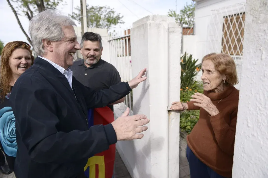 Fueron llegando más vecinos a esperar al presidente. Transcurrió una media hora. Una anciana de pantuflas fucsia y cabello muy blanco fue una de las primeras en saludarlo cuando salió de la casa de su hermana. Antes de subir al auto, Vázquez firmó una bandera que le extendió una vecina. Estampó su nombre al lado de las otras firmas suyas de elecciones anteriores.