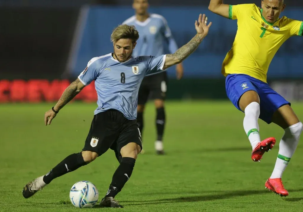 Tarjetas amarillas: Giménez, Nández, J. Rodríguez, Cáceres (U) y Douglas Luiz, Richarlison, Marquinhos (B)
