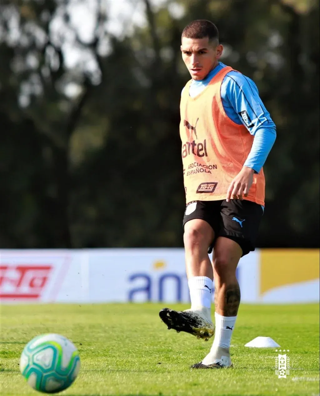 El trabajo en la mejor cancha del Complejo de la AUF fue breve pero intenso, y tras el movimiento con pelota un grupo de seis jugadores integrados por De La Cruz, Cáceres, Torreira, Darwin Núñez, Maxi Gómez y Viña se quedaron realizando ejercicios físicos con los preparadores físicos en el campo de juego, y el resto fue al gimnasio.