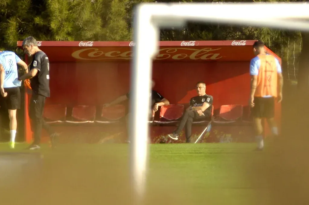 El profe Herrera trabaja en campo y Tabárez observa desde el banco