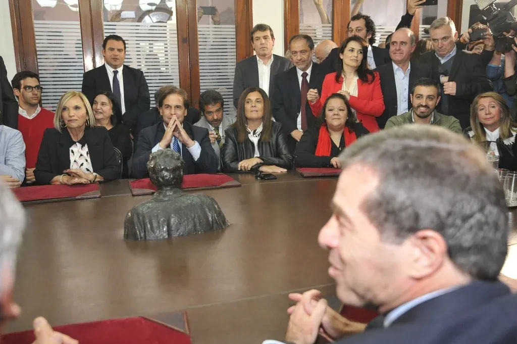 En el encuentro de este martes el nuevo líder colorado dijo que no hablaría de nombres para un eventual gabinete multicolor antes del 25 de noviembre porque no quería distraer la atención del objetivo principal, que es el triunfo de la fórmula de Luis Lacalle Pou y Beatriz Argimón el domingo 24. Sin embargo, les dio alguna pista de lo que pretende: “Estaremos en la gestión del gobierno y algunos de ustedes también”.