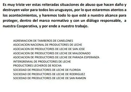 Además de definir a la dirigencia sindical como "radical" y señalar que "no valora lo que nuestra cooperativa les brinda", las gremiales lecheras apuntan que con esa actitud el sindicato "desconoce los siete años muy difíciles que el sector lácteo vivió (...) ignorando además el problema inflacionario mundial".