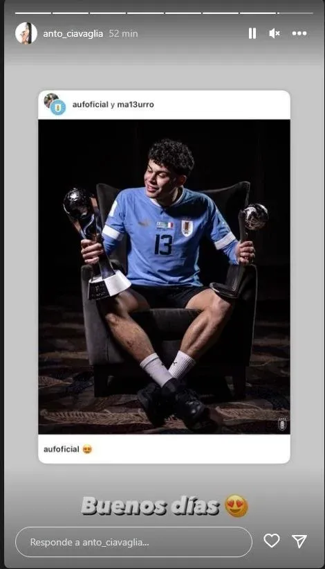 Instagram El posteo de Anto Ciavaglia Vale Lasalvia es la novia de Matías Abaldo (e hija del Chino Lasalvia, representante del futbolista), y festejó con un cariñoso posteo: "Felicitaciones hermoso! Más que merecido, a disfrutar este momento único. Te ".