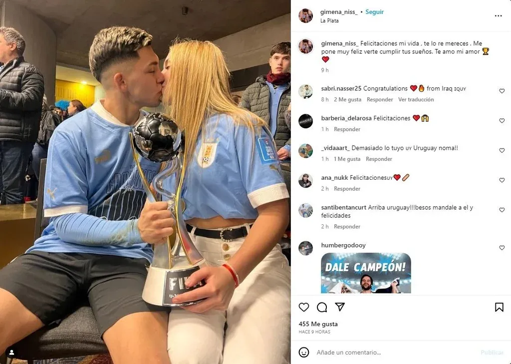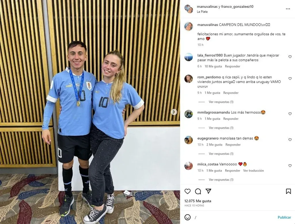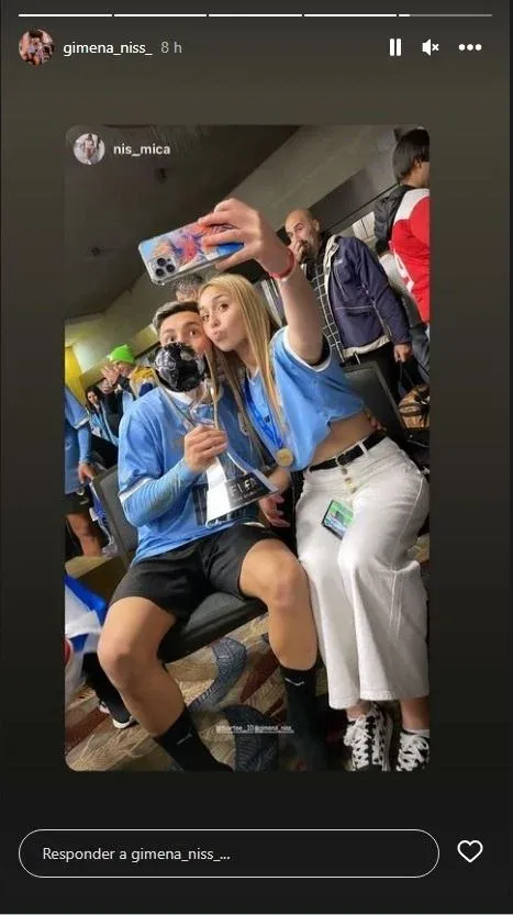 Instagram Gimena Niss es la novia de Anderson Duarte Manu Valinas es la novia del Cepillo Franco González, y escribió: "CAMPEON DEL MUNDOO!" felicitaciones mi amor, sumamente orgullosa de vos, te amo ".