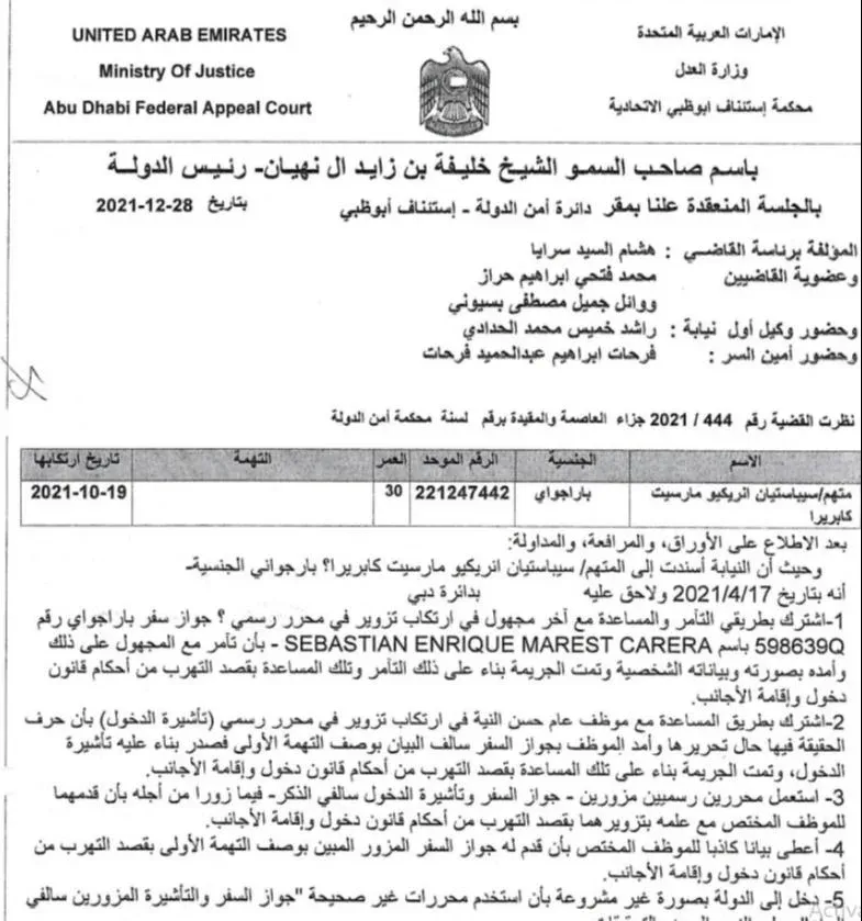 La nota ante la Justicia emiratí