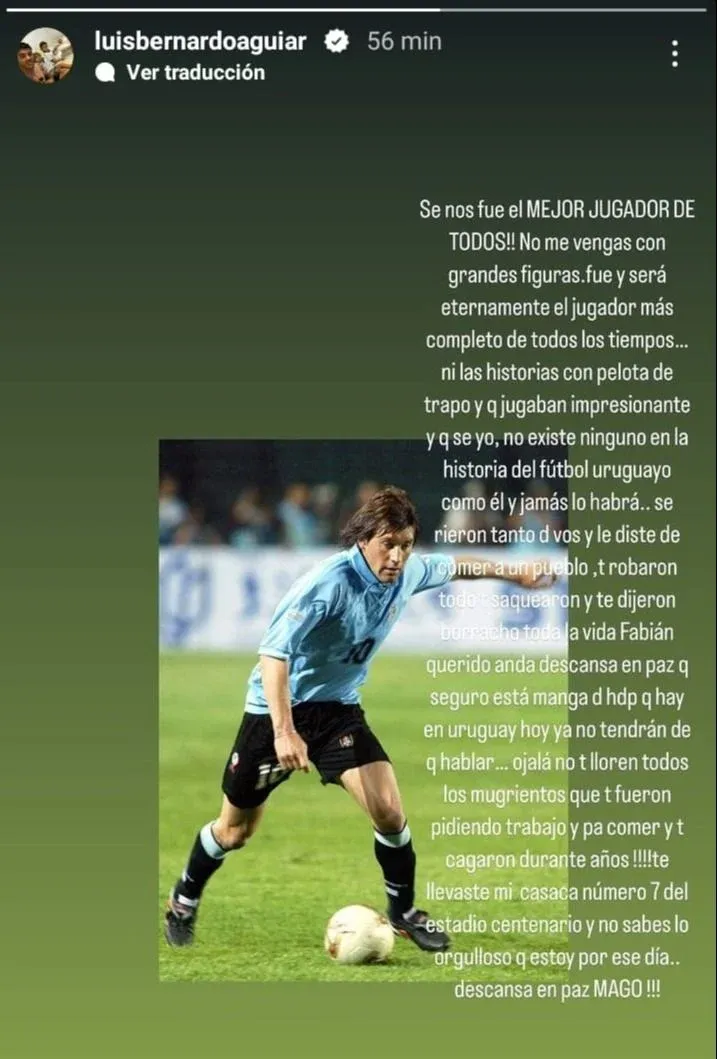 “Te llevaste mi casaca número 7 del Estadio Centenario y no sabés lo orgulloso que estoy por ese día. ¡Descansa en paz MAGO!”, dijo el Canario.