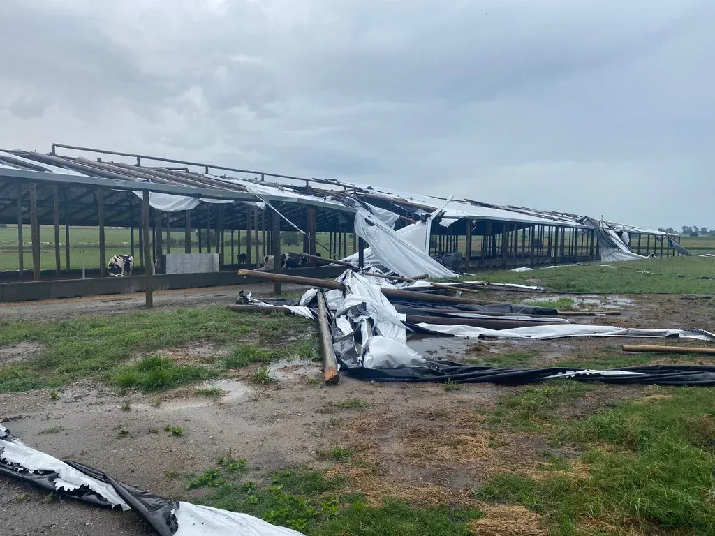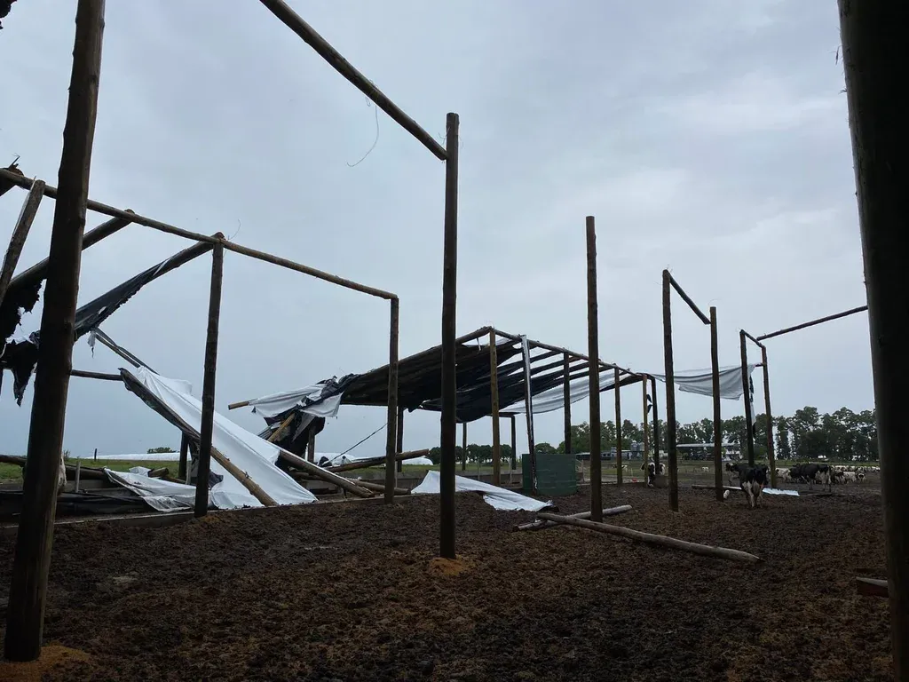 Andrés es productor de leche. Su sistema productivo está en la zona de la Barra de San Juan, muy próximo a la Estancia Presidencial Anchorena. Y allí el viento ocasionó un destrozo terrible: le voló la mitad de una estructura recién instalada, con base en madera y nylon, cuyo objetivo era potenciar la productividad de su rodeo lechero.