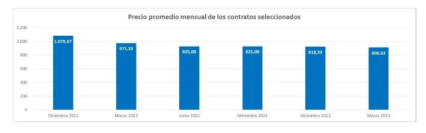 La Ursec informó que el precio promedio del contrato mensual en marzo de 2023 se ubicó en $ 908,33, desde $ 1.079,67 de diciembre de 2021.