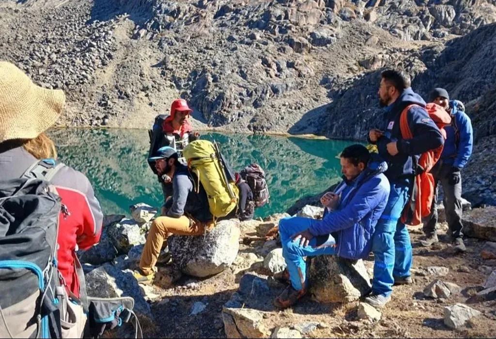"Pasamos una noche a 5.580 metros. Fue la más pesada: no teníamos bolsas de dormir ni aislantes, solo una manta térmica cada uno", recuerda Aparicio.
