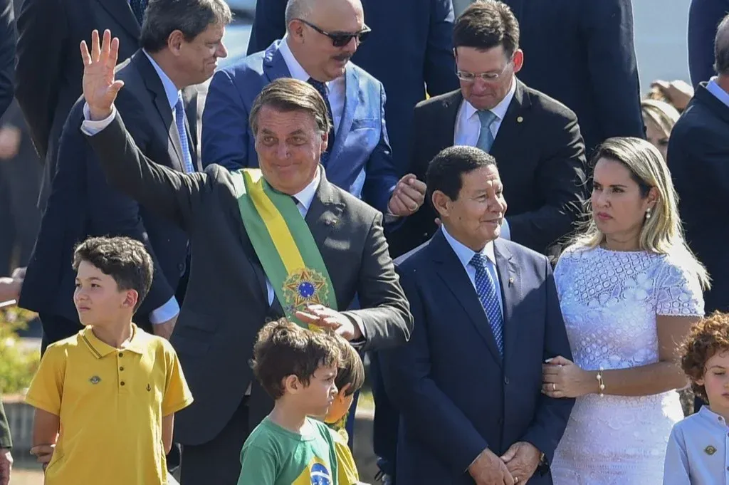 Jair Bolsonaro (presidente), Hamilton Mourao (vicepresidente) y sus esposas