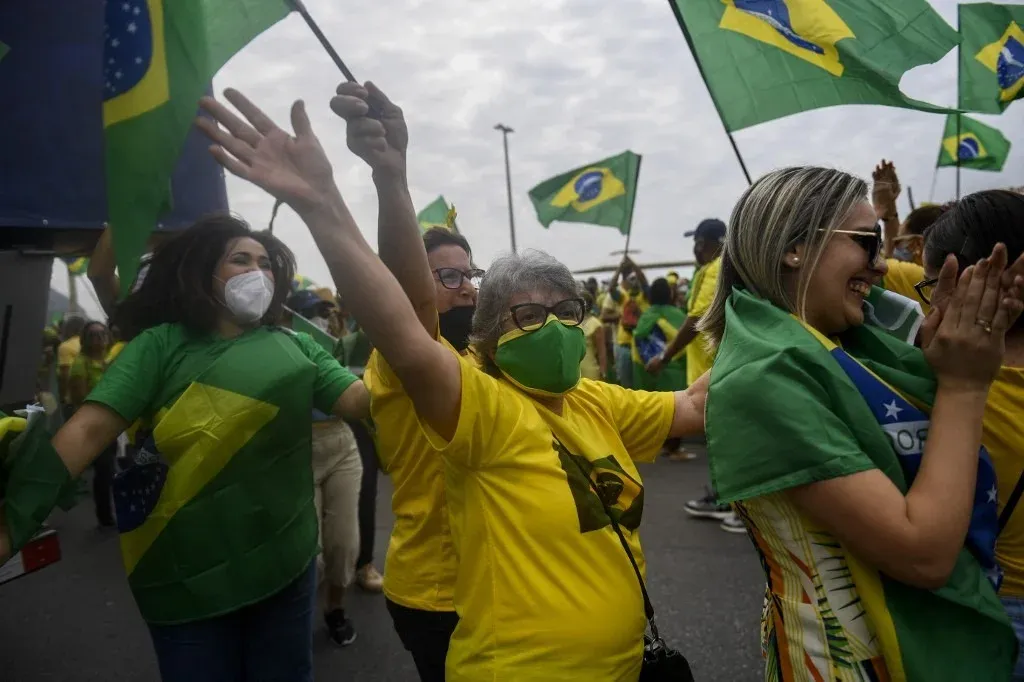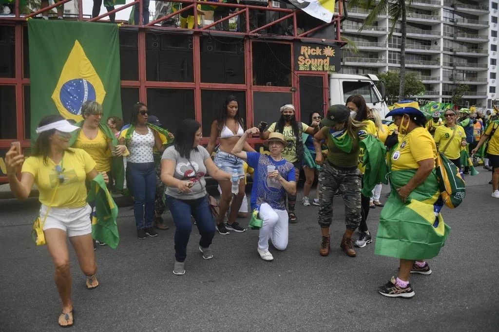 Manifestantes pro-Bolsonaro bailando en Río de Janeiro