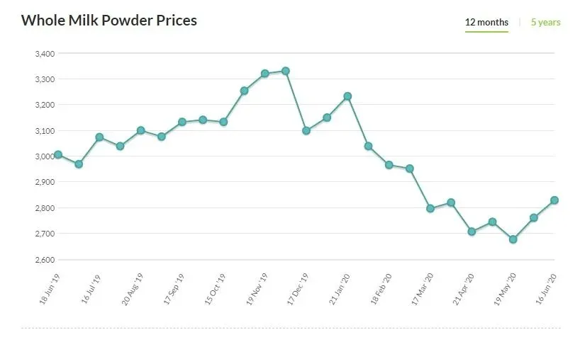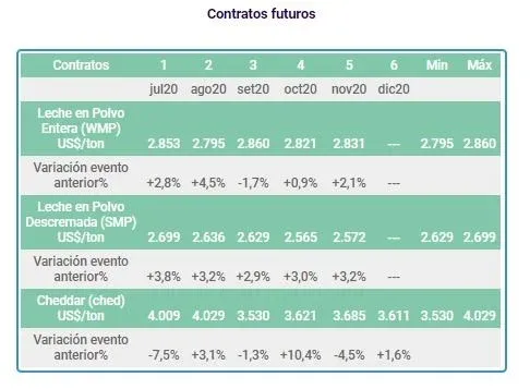 En la lectura por rubros, en el caso de la leche en polvo entera (WMP), que es el producto lácteo de mayor volumen en las colocaciones externas de Uruguay, el precio promedio ascendió un 2,2% registrando US$ 2.829 por tonelada.