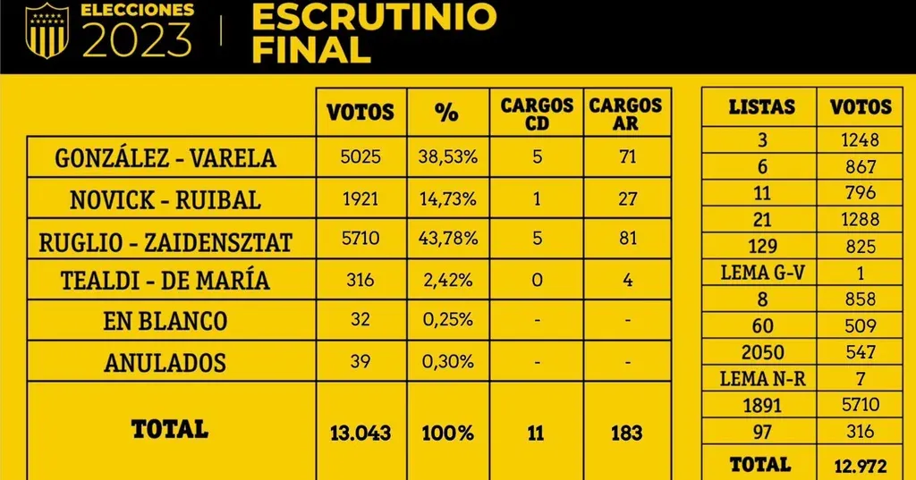 Los números finales de las elecciones de Peñarol