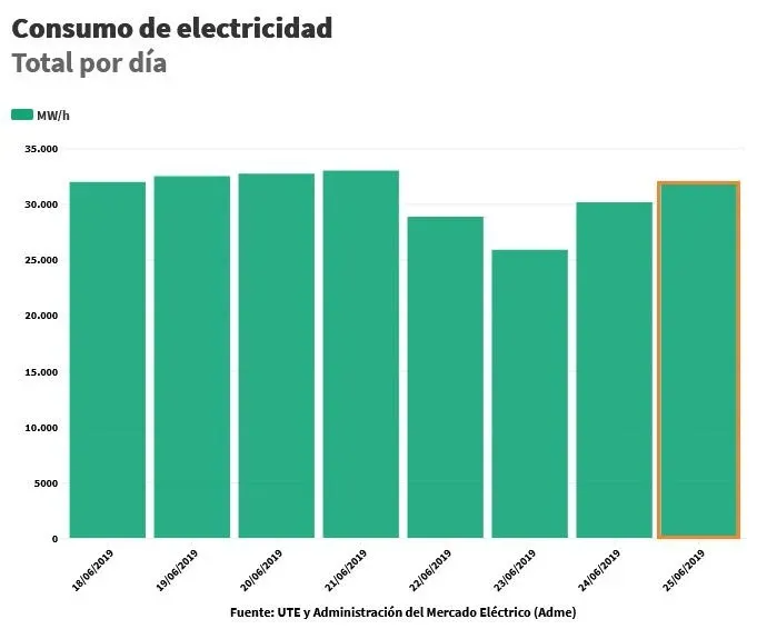 En este caso, los datos de UTE dan cuenta que el consumo de electricidad durante el día del paro fue muy similar al registrado una semana atrás el martes 18 de junio (ver gráfico) y no hubo un efecto significativo.