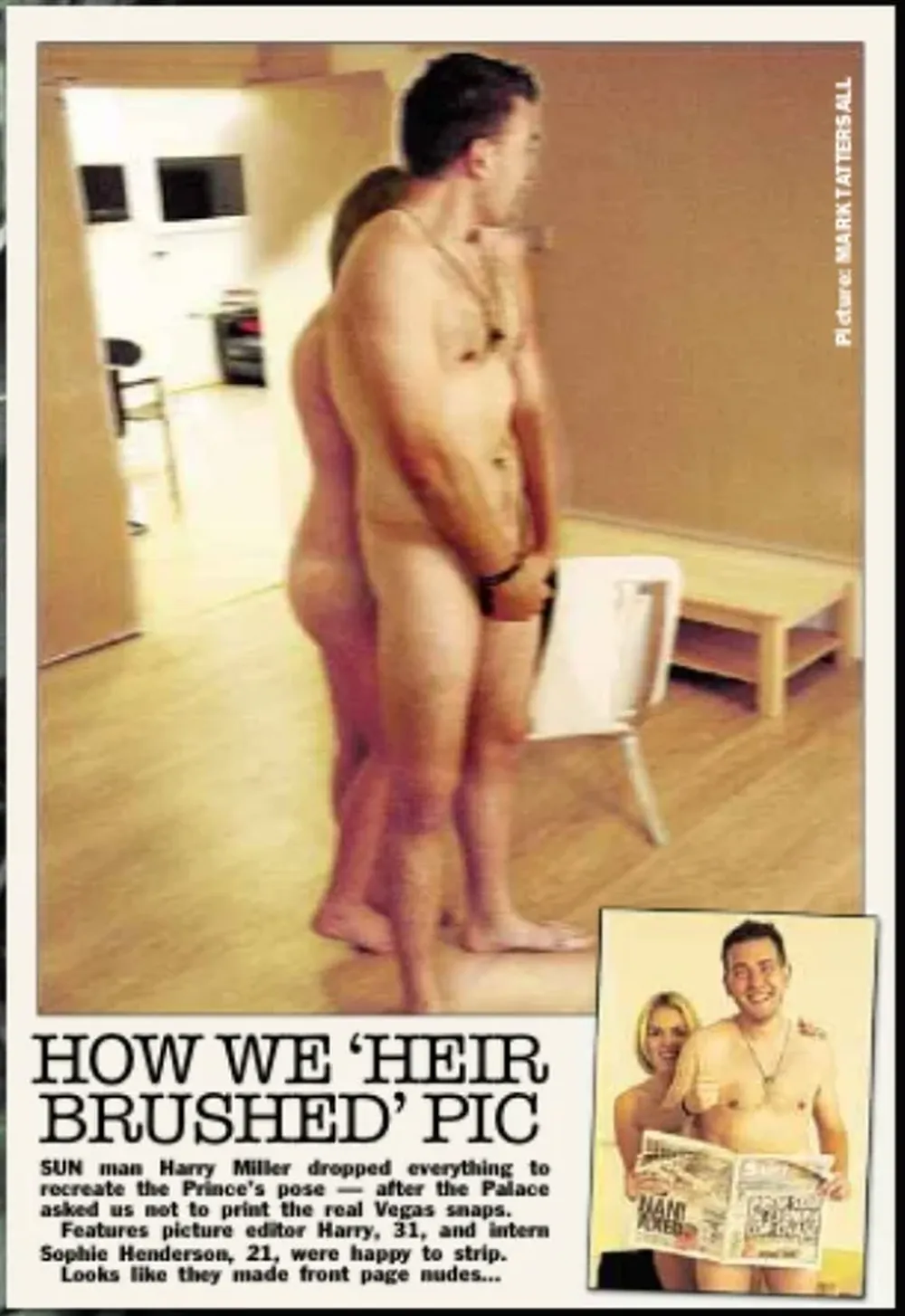 The Sun recreó la foto del príncipe Harry desnudo con una pasante