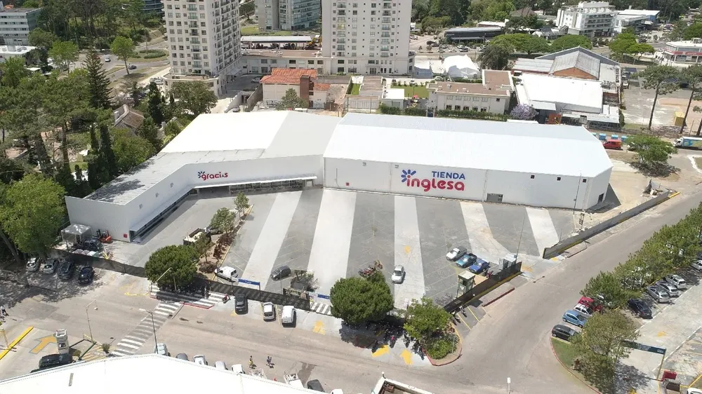 Luego del incendio de agosto que destruyó la sucursal de Tienda Inglesa en Punta Shopping, se levantó en tiempo récord un nuevo local en el estacionamiento del centro comercial.