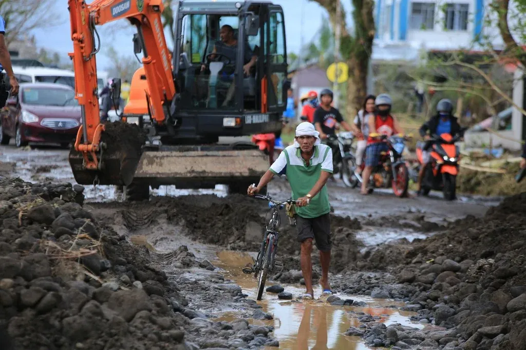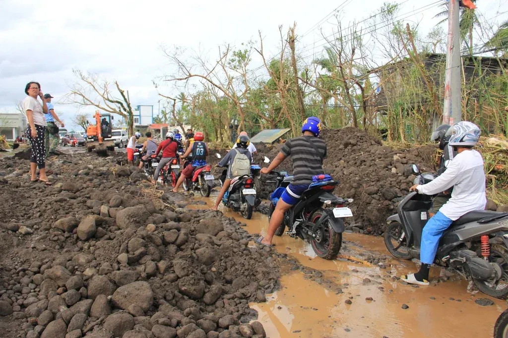 "Las carreteras están cubiertas de restos procedentes de las montañas, de ramas y de arena, algunos provienen del volcán Mayon. En varias carreteras no se puede circular", añadió.