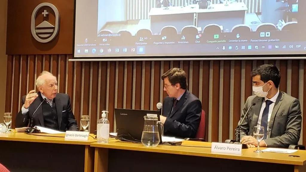 Crédito: Instituto de Negocios Internacionales de la Universidad Católica del Uruguay (UCU) Gabriel Rozman, Ignacio Bartesaghi y Álvaro Pereira Artaza destacó un trabajo “muy activo” del gobierno chileno junto al sector privado, el académico y la Central Unitaria de Trabajadores de Chile (CUT) a través del cual se lograron inputs que “permitieron tener el acuerdo luego de las cinco rondas de negociación”.