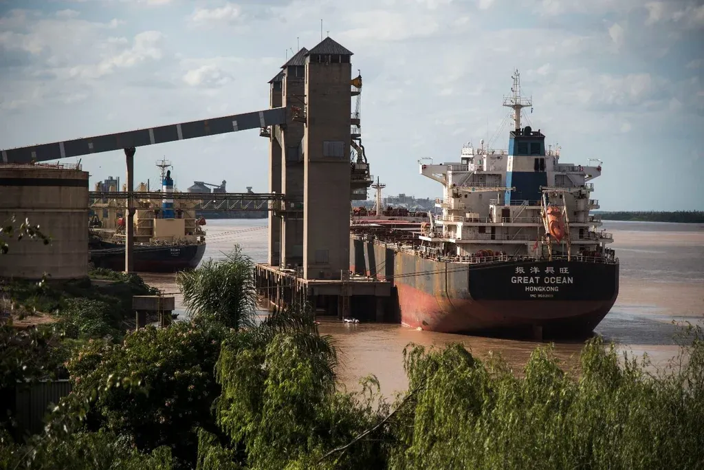 AFP Carga de soja en el puerto de Rosario, en Argentina. Genera inquietud, puntualmente, el monto de las primas negativas frente al valor de la Bolsa de Chicago, de menos US$ 60 o menos US$ 62 por tonelada al productor y eso, afirmó, “es mucho dinero, porque en un promedio histórico te da entre US$ 20 y US$ 30”.