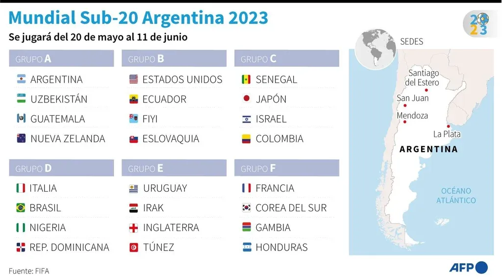 Fixture completo del Mundial sub 20 Argentina 2023