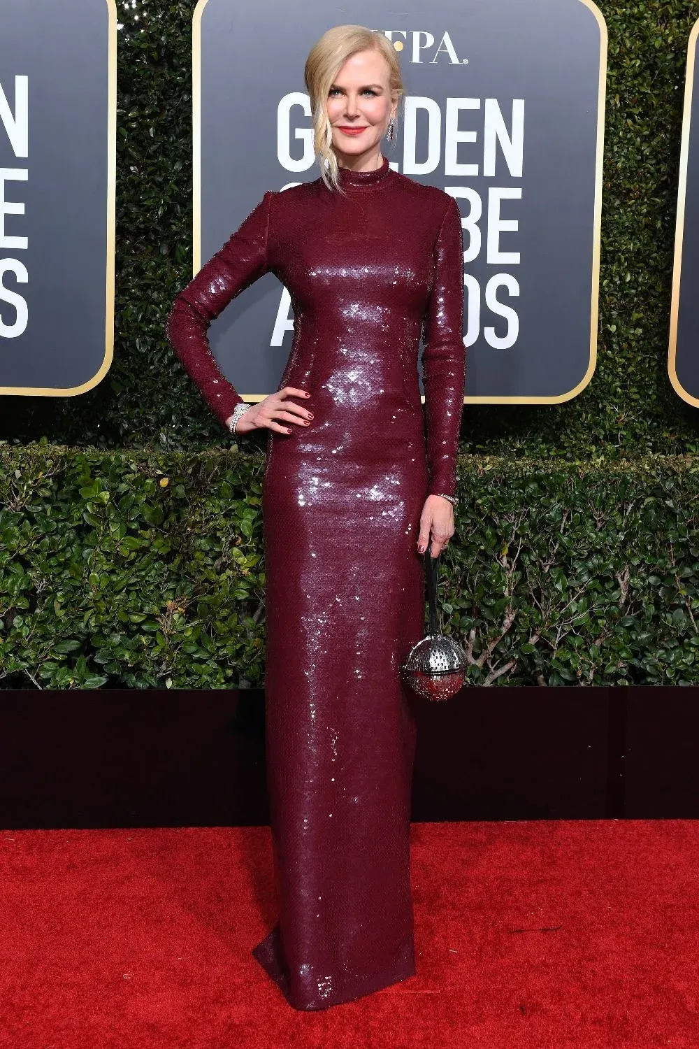4. Nicole Kidman llevó un ajustado diseño bordó de Michael Kors Collection.
