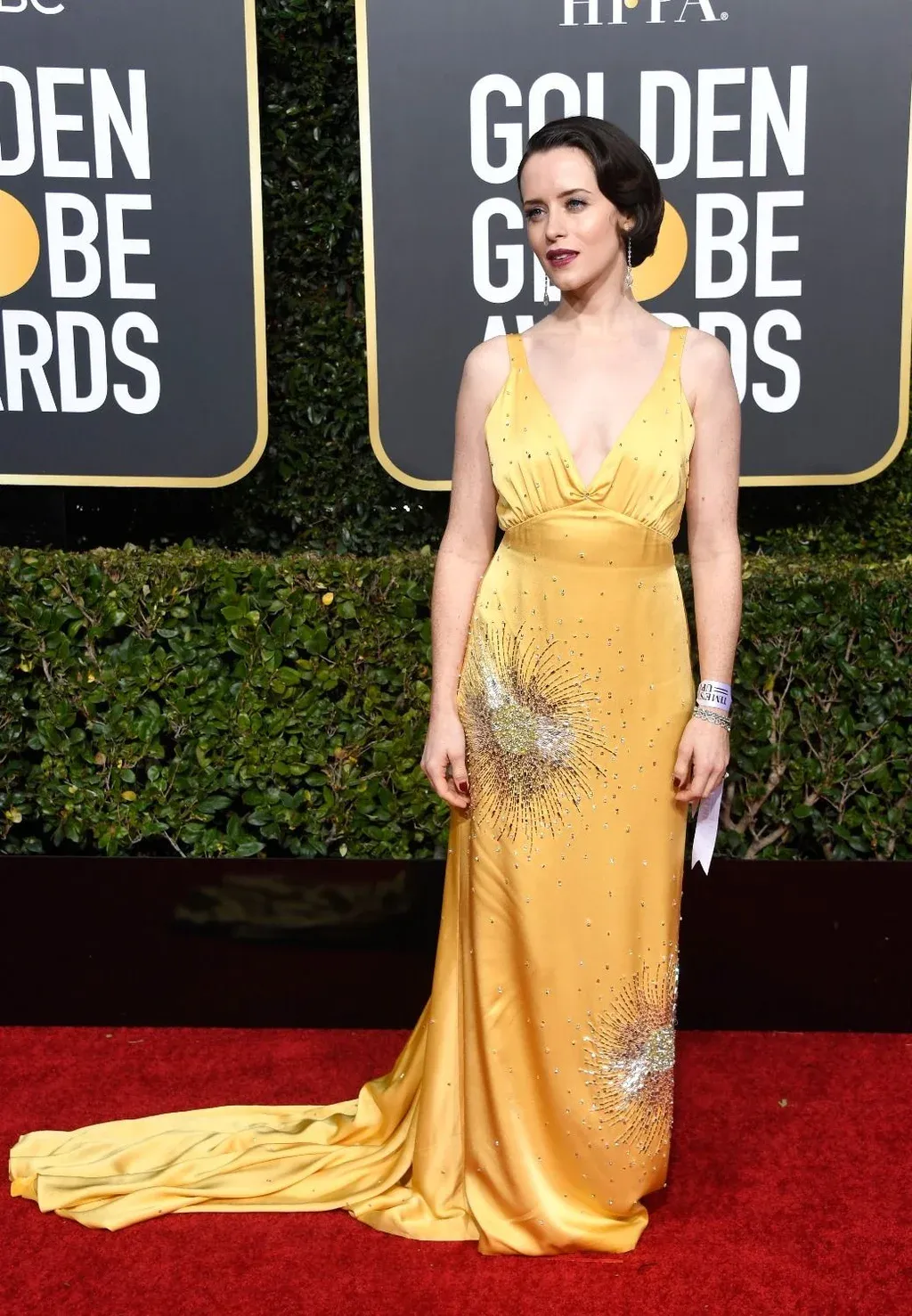 10. Claire Foy fue una de las pocas que se animó al amarillo, un color siempre difícil. De todos modos el diseño firmado por la casa italiana Miu Miu no fue la mejor opción.