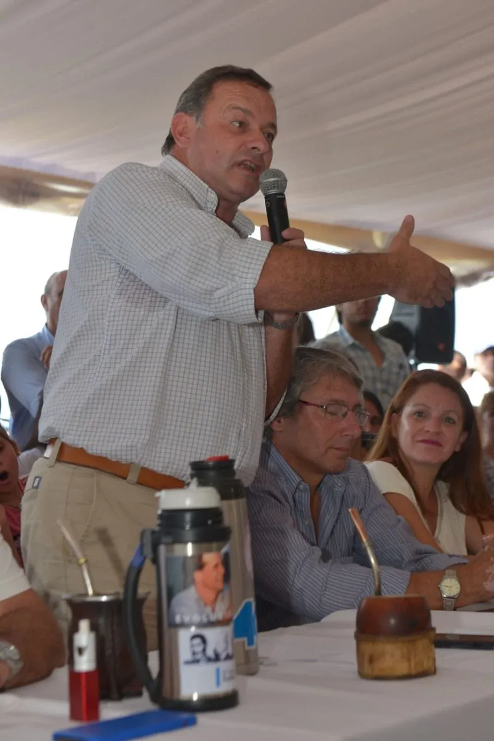 A medida que se acercaba el mediodía el calor aumentaba adentro de la carpa y los organizadores decidieron acortar el evento y no abrir un espacio de preguntas para que el que se pretendía destinar una hora. Por eso, una vez que los senadores Delgado, García y Heber y el intendente Enciso pasaron mensajes enfocados en la necesidad de un cambio de gobierno, de buscar la unidad interna pero también el acuerdo externo y de “evolucionar” como sector y como gobierno, fue el turno de Lacalle Pou.