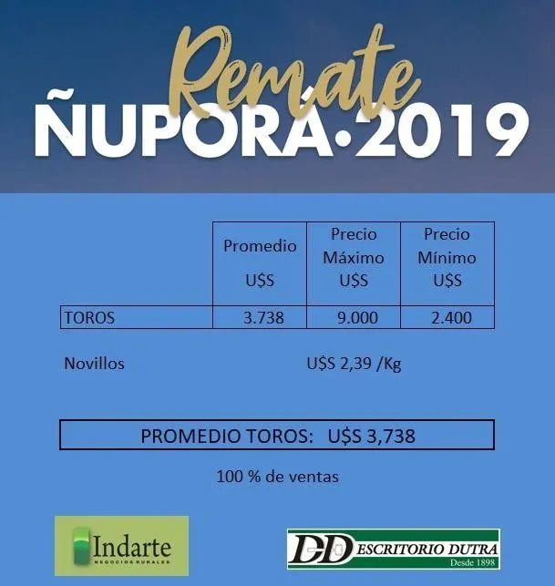 Ese valor mejoró en gran medida respecto a la venta de 2018, cuando se obtuvo una media de US$ 2.916.