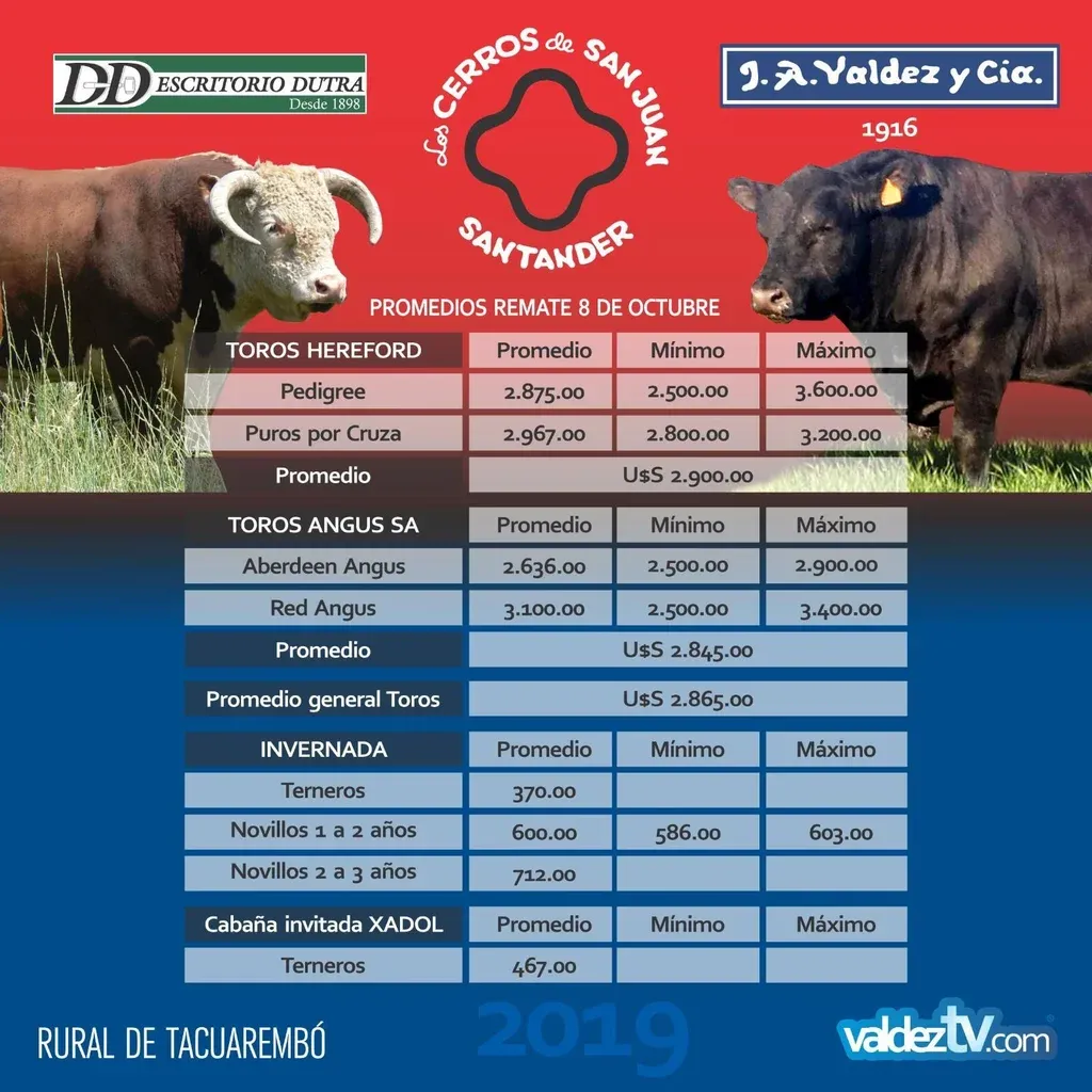 Pablo Valdez, director de Valdez y Cía, comentó a El Observador que el remate fue "muy bueno" y que se alcanzaron promedios "muy auspiciosos" para las toradas de campo que ofrecen las cabañas.