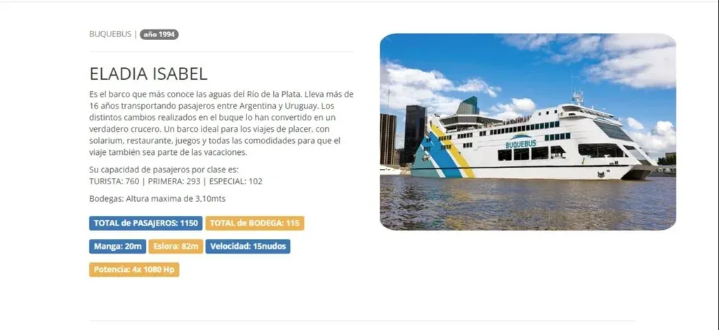Así describía Buquebus al Eladia Isabel