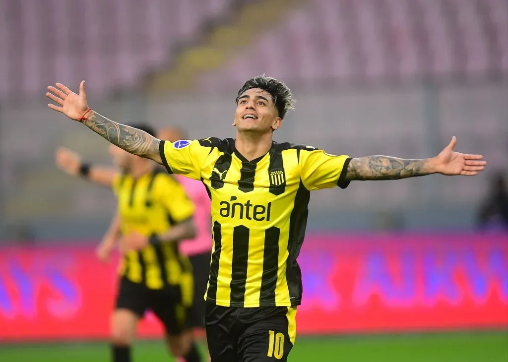 La sonrisa de Facundo Torres con la camiseta de Peñarol