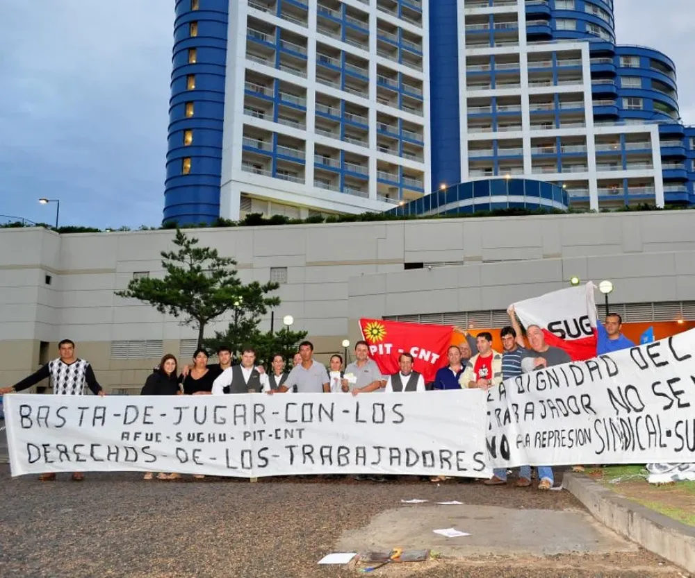 Unos 60 miembros del gremio de trabajadores del sector hotelero y gastronómico de Punta del Este (Sughu) –entre ellos unos 25 del hotel- manifestaron la noche del lunes en las inmediaciones del Conrad, “en respuesta a la represión sindical” de algunos mandos medios del afamado hotel de la península.