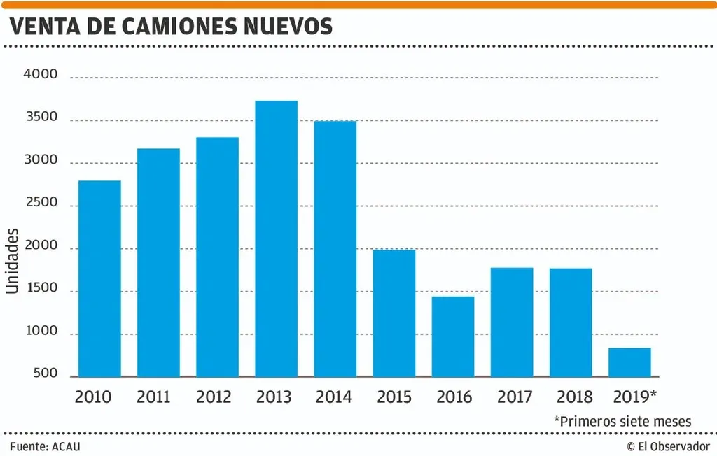 La comercialización de camiones nuevos está frenada hace varios años. Tuvo su pico, al igual que todo el comercio automotor, en 2013 cuando se vendieron 3.731 vehículos 0 km. En 2015, fueron prácticamente la mitad (1,989) y el año pasado la cifra se ubicó en un nivel más bajo todavía: 1.771 unidades.