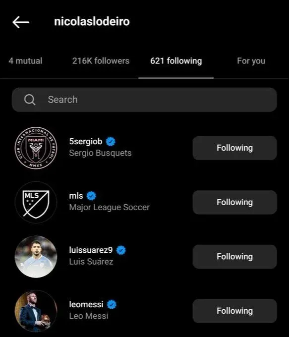 Un dato que llama la atención en las redes sociales es que el uruguayo sigue en Instagram la cuenta del Inter Miami.