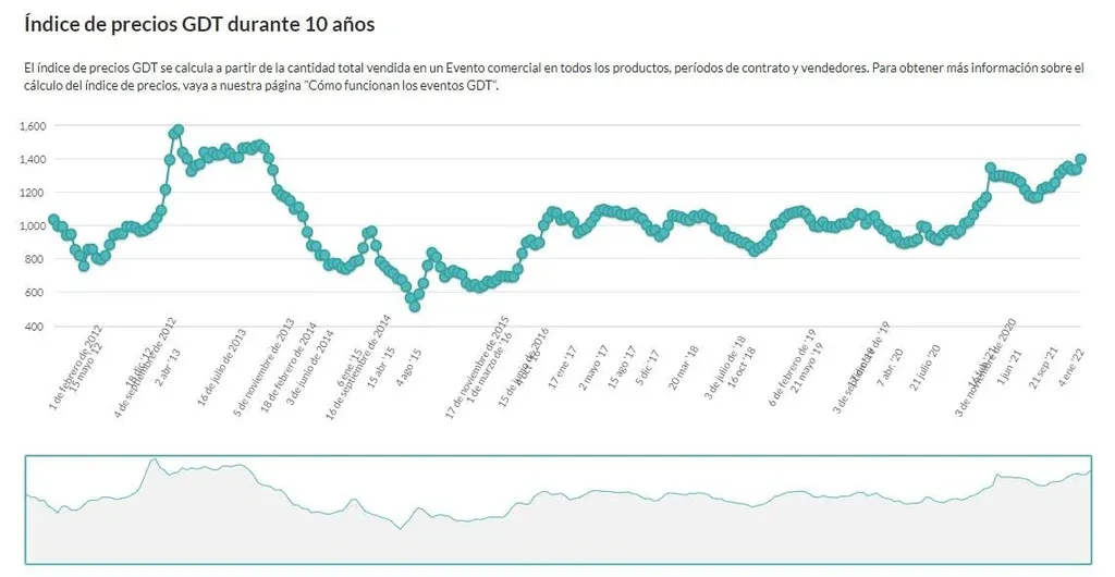 En la licitación inicial de enero la referencia había alcanzado los US$ 4.247 por tonelada y ahora, al concluir el mes inicial del año, el precio promedio para todos los lácteos quedó en US$ 4.463 (US$ 216 más por tonelada), tras un ascenso de 4,6%.