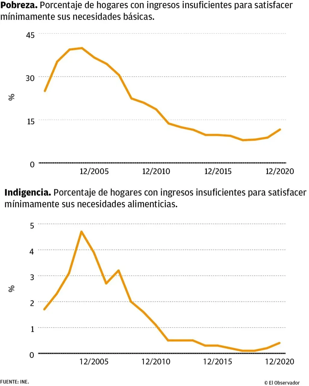 Según los datos difundidos por el Instituto Nacional de Estadística (INE), en el promedio del último año, 11,6% de la población uruguaya percibió en 2020 ingresos insuficientes para satisfacer mínimamente sus necesidades básicas.