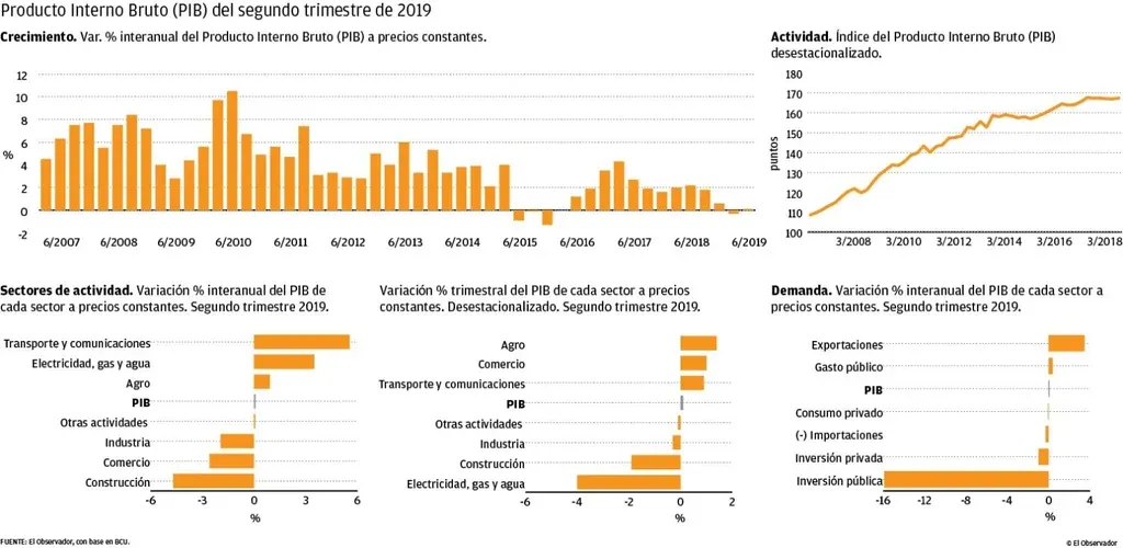 La economía uruguaya mantuvo sus grandes motores apagados y apenas logró crecer 0,1% interanual en abril-junio