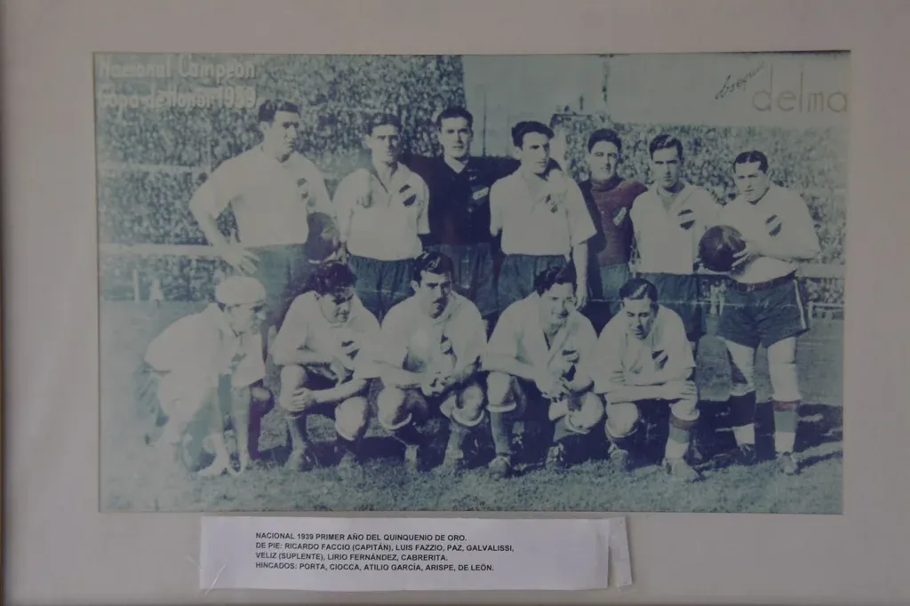 Nacional campeón de Honor y Uruguayo 1993; el primero de los parados desde la izquierda es Ricardo Faccio, el padre de Juan Faccio, en el medio, el arquero Aníbal Paz, quien lo llevaba a la escuela, a su lado, el Pato Galvalisi, quien luego lo dirigiría en Liverpool cuando ascendieron en 1966; abajo, el primero desde la izquierda es Roberto Porta, su tío, y en el medio, inconfundible, Atilio García