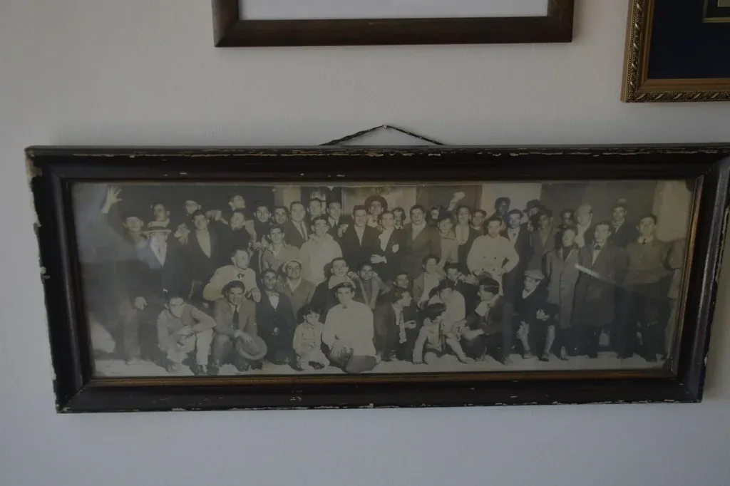 La despedida de Ricardo Faccio en Jacinto Vera cuando se iba a jugar a Italia, con el Flaco Eduardo García, dos lugares hacia la derrecha; abajo se ven a Roberto Porta mirando hacia la derecha y a Juan Porta, el abuelo de Juan Faccio, mirándolo a él
