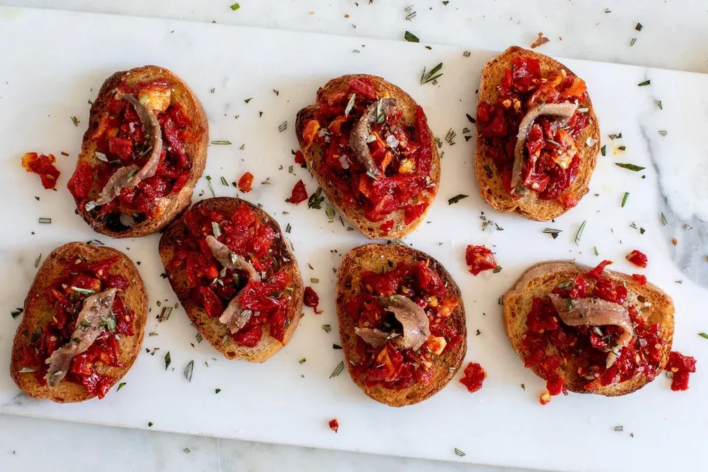 Receta: Crostini con tomate deshidratado al sol y anchoas