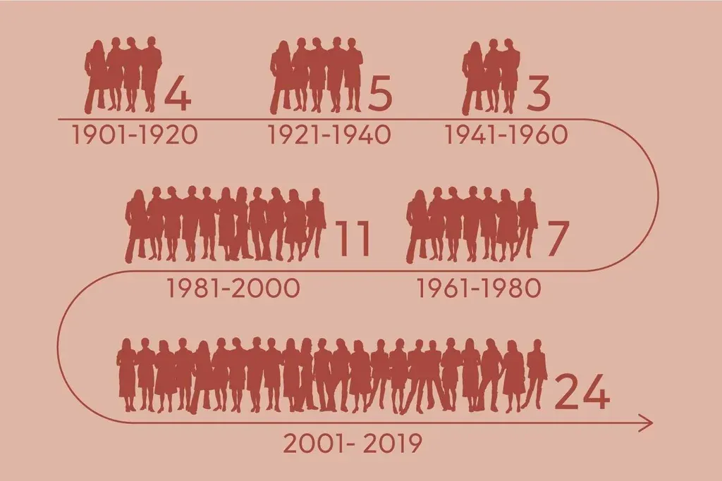 El año 1976 fue el primero en el que más de una mujer recibe un Premio Nobel. Betty Williams y Mairead Maguire compartieron el Premio Nobel de la Paz por fundar el Movimiento por la Paz de Irlanda del Norte. 2009 sería el año en el que más mujeres recibirían este premio: la estadounidense Elinor Ostrom en Economía, la alemana Herta Müller en Literatura, la israelí Ada E. Yonath en Química, y las estadounidenses Elizabeth Blackburn y Carol W. Greider en Medicina. En 2020, Andrea Ghez es la cuarta mujer en la historia en ganar el Premio Nobel de Física. También Emanuelle Charpentier y Jennifer Doudna elevan a siete el numero de veces que una mujer recibe el Premio Nobel de Química. ¿Será 2020 el año en el que se supere esta cifra récord?