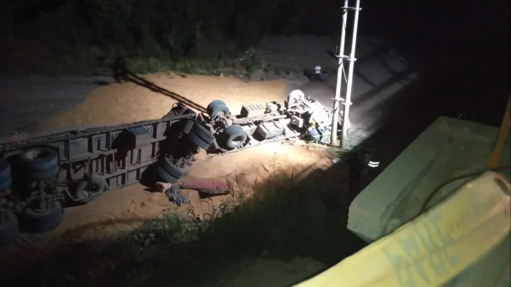 El segundo siniestro sucedió en Soriano a las 02:50 de este viernes. Un camión que tiraba un remolque cargado de trigo circulaba por la ruta 20 de este a oeste, hasta que llegó a un puente a la altura del kilómetro 58, perdió el dominio y volcó.