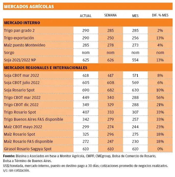 En Uruguay esta semana se manejaron primas en acopio US$ 20 arriba de la referencia de Chicago.