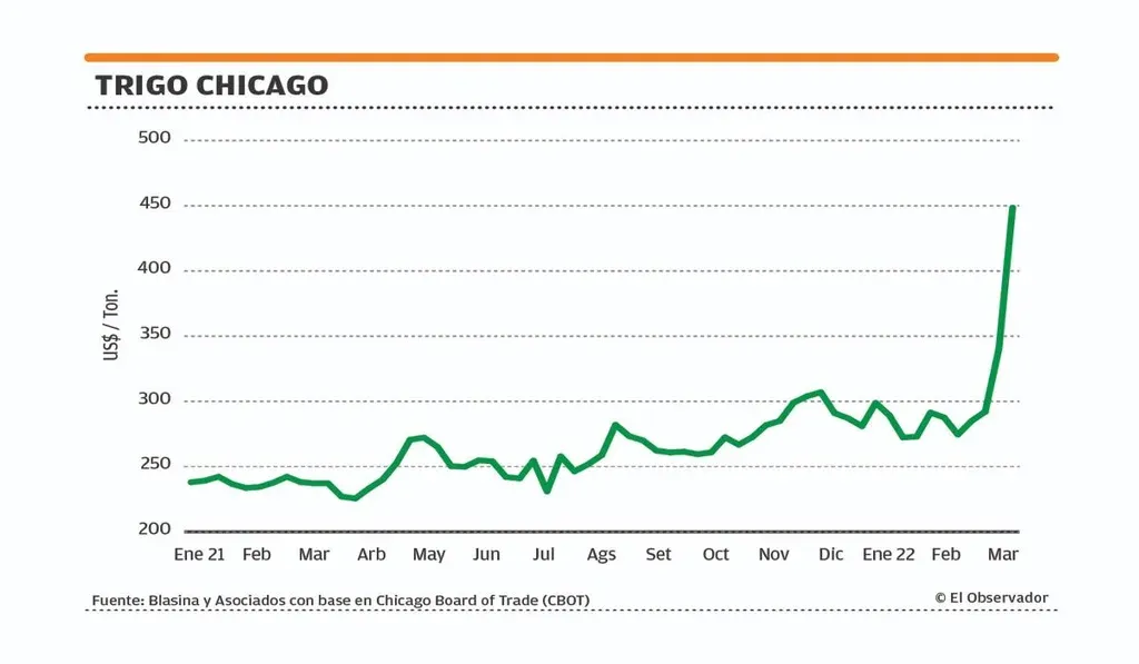 El trigo ha sido la estrella del mercado. Al cierre de la semana el contrato mayo de trigo en Chicago cruzó con luz los US$ 400 por tonelada.
