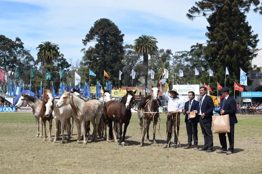 Juan Samuelle Gabino Azeves, establecimiento Altamira, Piñera, Paysandú. Por otro, hubo un primer premio a Fabio Delgado y un segundo premio a Alejandro Stirling, en ese caso en la competencia de velocidad entre las ocho tropillas, para ver cuál se agrupaba antes luego del entrevero de todos los equinos.