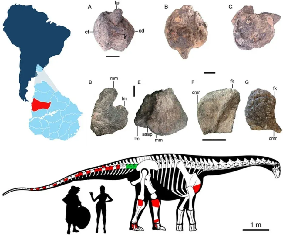 El artículo científico "Relaciones filogenéticas de un nuevo titannosaurio (Dinosaria, Sauropoda) del Cretácico Superior de Uruguay" fue publicado por los paleontólogos Matías Soto, Felipe Montenegro y Daniel Perea, del Instituto de Ciencias Geológicas de la Facultad de Ciencias. Además, colaboraron José Carballido, del Museo Paleontológico Egidio Feruglio de Chubut, Argentina, y Max Langer y Julian Silva, del Departamento de Biología de la Universidad de San Pablo, Brasil.