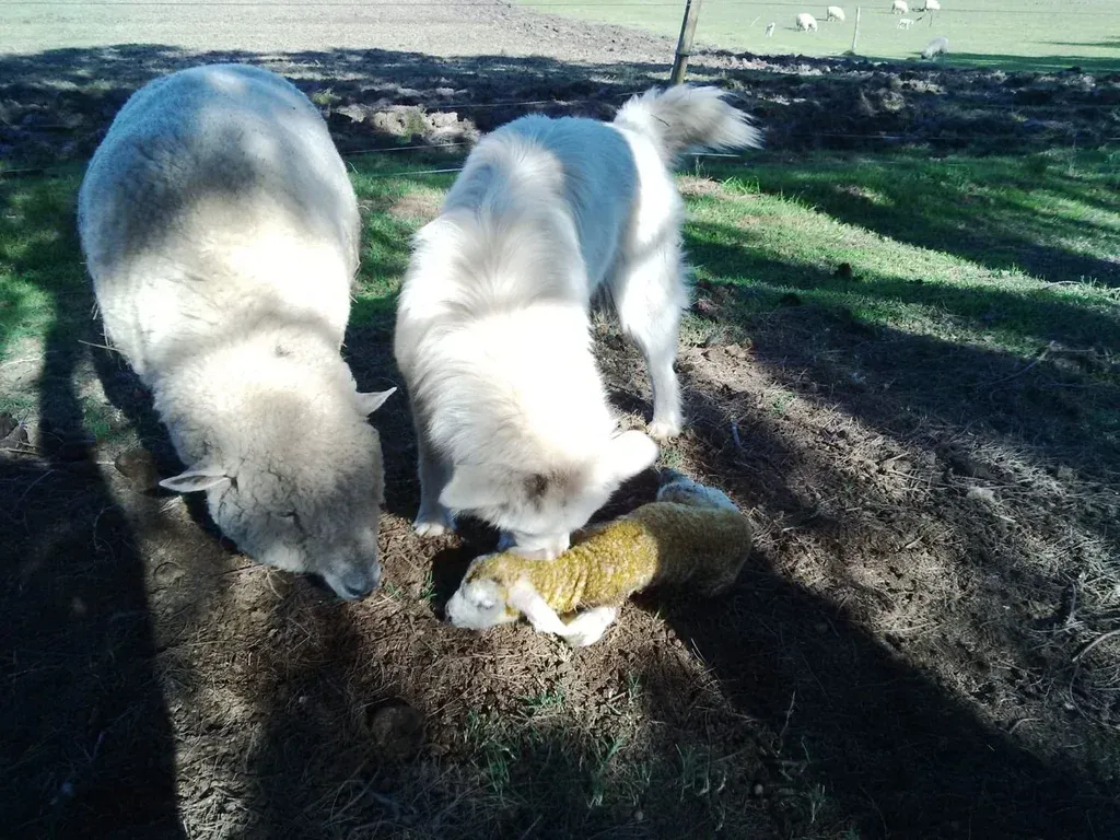 J. Birriel Algo que no sorprende en el medio rural, una especie mamando de otra. Uma lo que hace es proteger a los ovinos alejándolos de un eventual peligro, interponiéndose; con un solo ladrido las ovejas saben qué deben hacer ya que se colocan detrás de la perra tomando como referencia el eventual peligro, pero también ayuda en el momento de los partos, separando a las ovejas que han parido de las otras, lamiendo a los corderos para limpiarlos y darles calor.